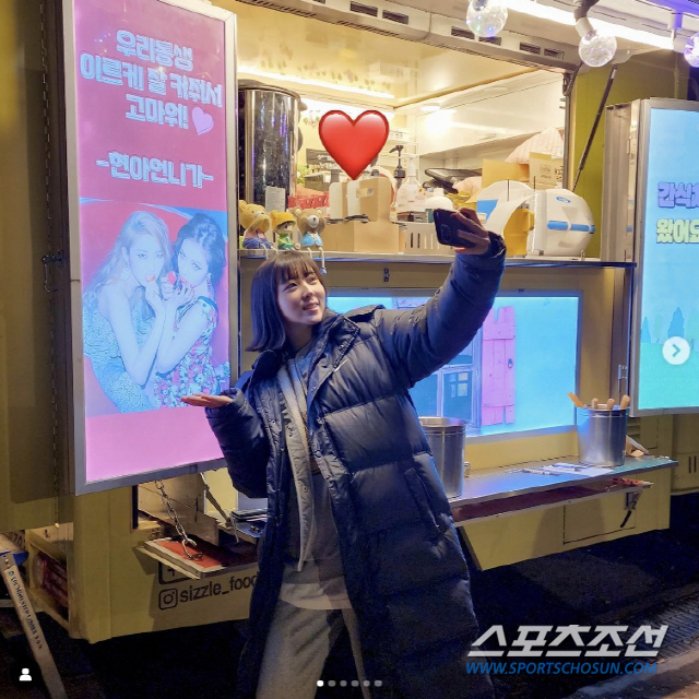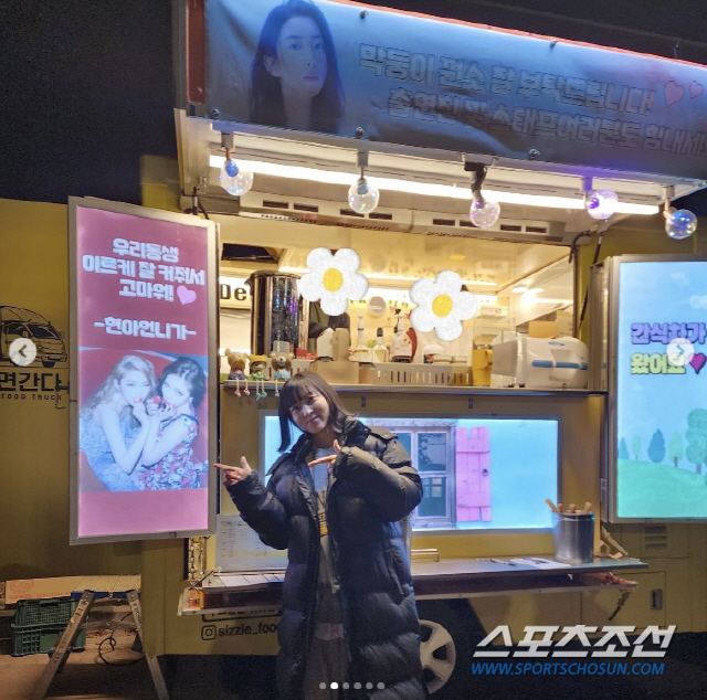 공개된 사진 속 권소현은 현아가 촬영장으로 보낸 커피차 앞에서 환하게 웃고 있다.