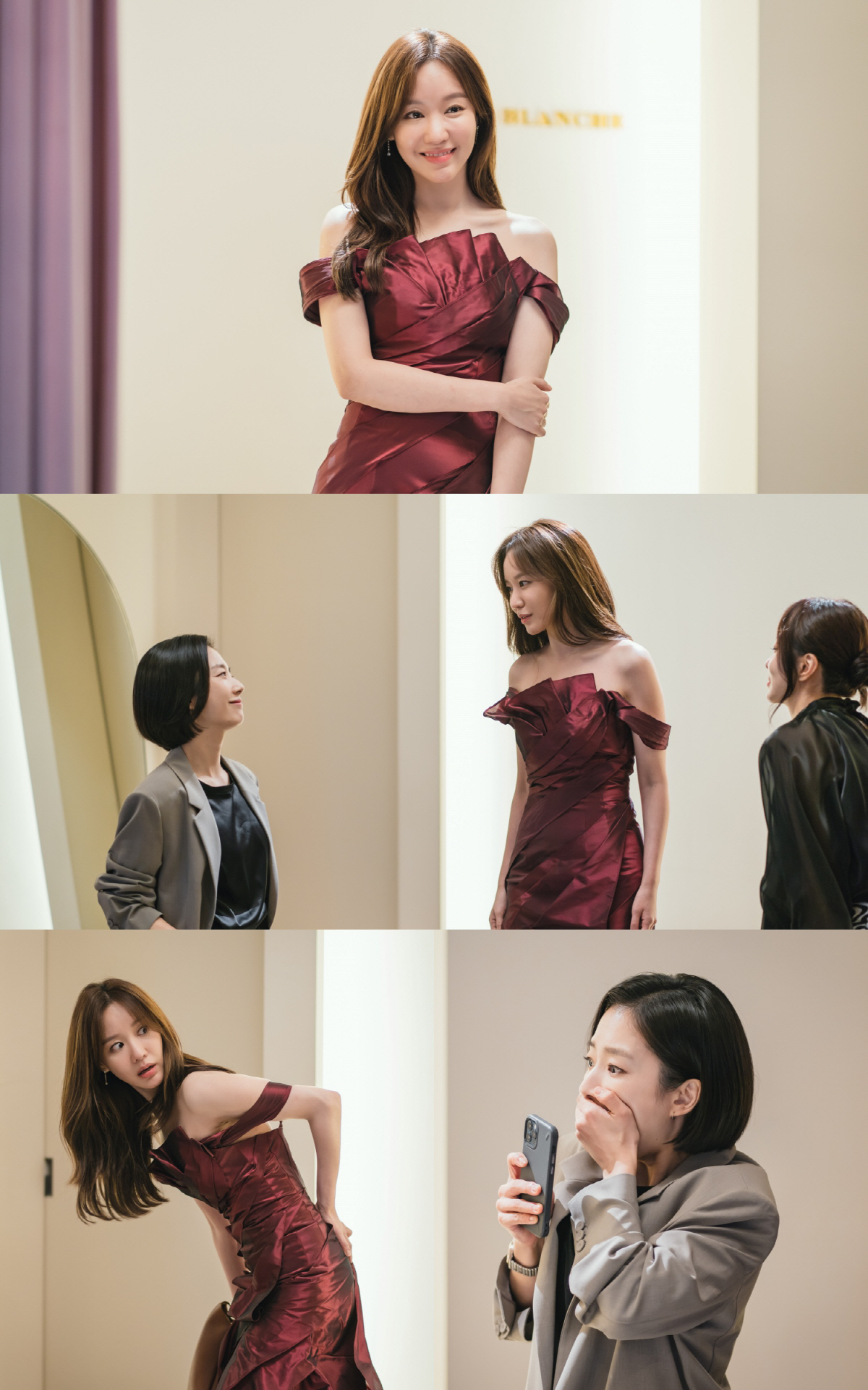 그런데 이 훈훈한 분위기는 곧이어 산산조각 난다. 어렵게 준비한 드레스에 문제가 생긴 것. 아중은 허리춤을 붙잡으며 상황의 심각성을 가늠하고 있고, 드레스가 망가진 최악의 상황을 목도한 제인은 입을 틀어막을 정도로 온몸으로 당황스러움을 표현하고 있다.