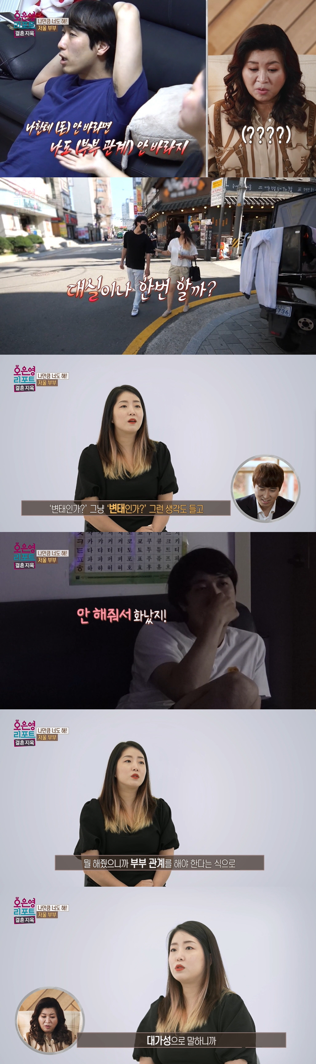 그날 저녁, 아내가 지인과 술자리 후 밤늦게 귀가하자 남편은 아내에 대한 불만을 쏟아냈다. 아내가 "돈을 많이 써서 화가 났냐"라고 묻자, 남편은 "돈은 쓰면서 잠자리를 가져주질 않으니 화가 났다"고 말했다. 이에 아내는 "뭘 해줬으니까 부부 관계를 해야 한다는 식이다. 카드값 내줬으니까 부부 관계해야 한다고 대가성으로 말하니까 내가 몸을 파는 여자인가?라는 생각이 들더라"고 털어놨다.