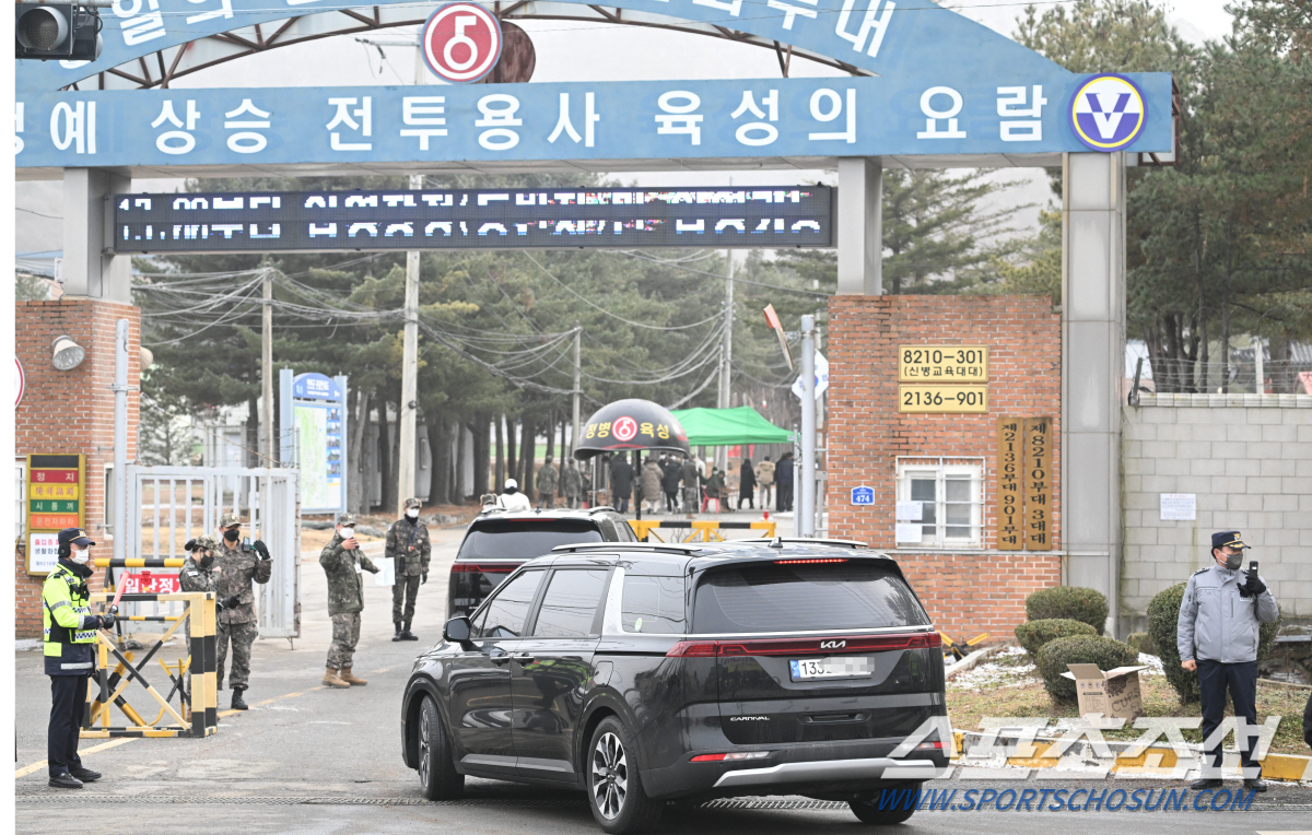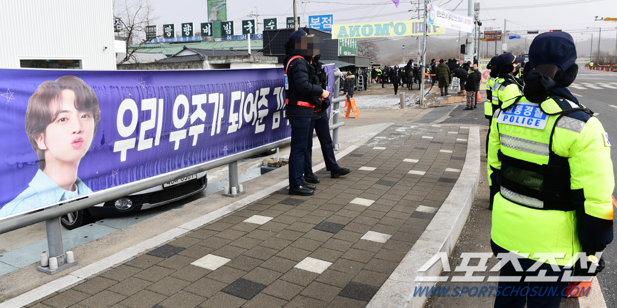 진은 앞서 공지한대로 별도의 인사 없이 차량에 탑승한 채로 훈련소로 들어갔다. 방탄소년단 멤버들도 전원 출동, 검은색 벤 차량 네 대로 나눠 타고 부대 안으로 들어가 진을 배웅했다.