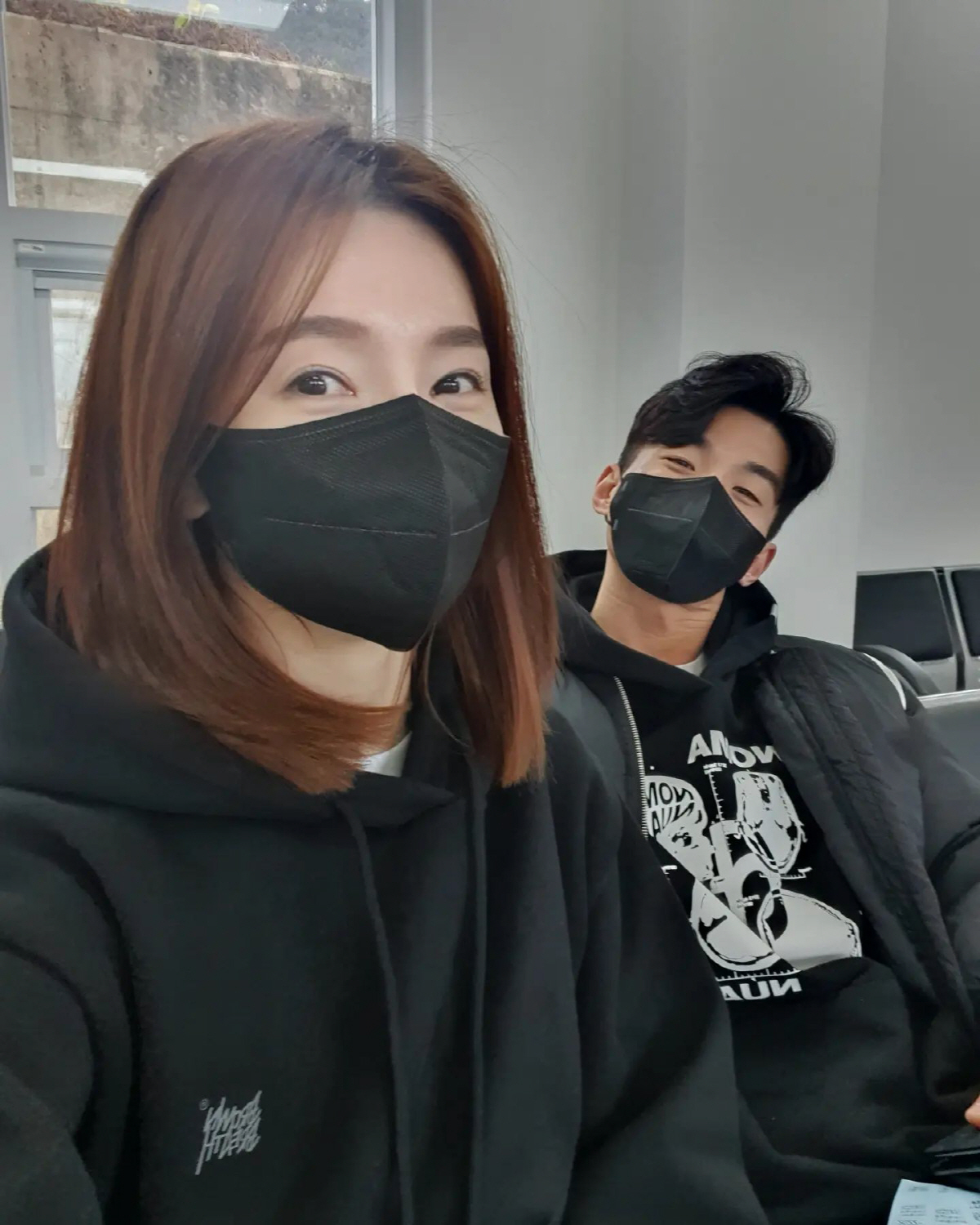 조예영은 16일 한정민과 찍은 커플 셀카를 공개했다. 사진 속 조예영과 한정민은 마치 커플룩을 맞춰 입은 것처럼 올블랙 패션을 선보였다. 여기에 마스크까지 블랙으로 착용한 모습. 또 한정민은 작은 얼굴을 더 강조하기라도 하는 듯 조예영의 뒤로 가서 사진을 찍는 셀카 스킬을 뽐냈다.