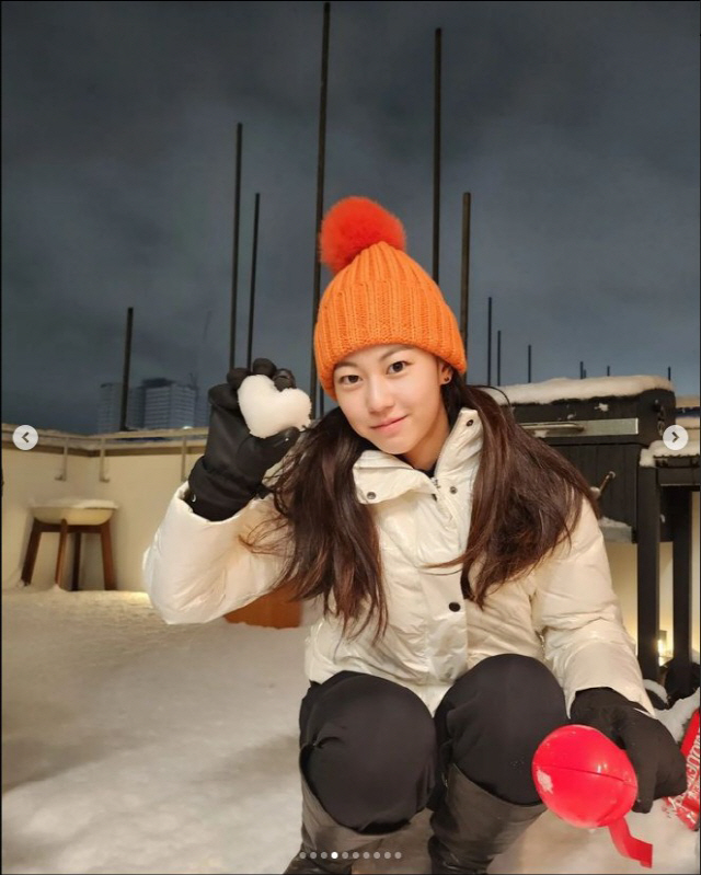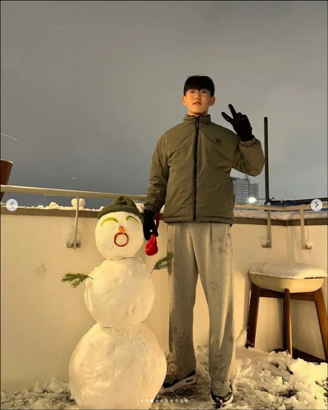 송지아, 송지욱 남매는 눈 사람을 만든 후 포즈를 취하고 있다. 눈사람을 만든 후 모자와 스카프까지 장식한 두 사람의 센스가 눈길을 끈다.