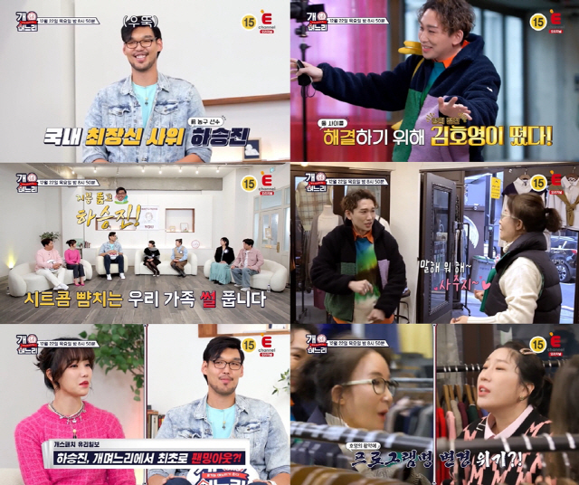 오는 22일 방송되는 티캐스트 E채널 예능 프로그램 '개며느리'(연출 박소현, 작가 안용진) 6회 예고에는 요즘 방송가에서 종횡무진 활약하고 있는 김호영과 전 농구선수 하승진이 등장했다.