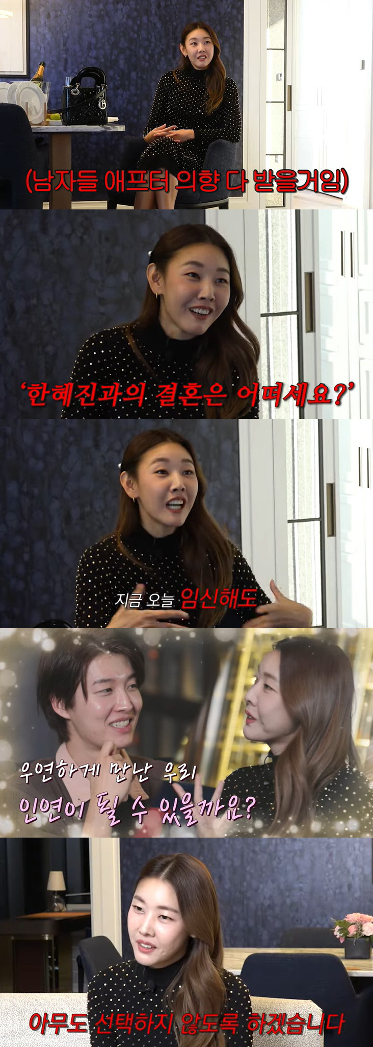 두 번째 소개팅을 앞두고 한혜진은 "애프터가 있냐"고 물었고 제작진은 "당연하다. (애프터) '의향 있냐' 해서 대답을 다 받을 것"이라 답했다. 이에 한혜진은 "그럼 안 된다. 질문을 이렇게 해야 한다. '한혜진에게 결혼하자고 할 거냐'고. 난 바로 결혼해야 한다. 오늘 임신해도 노산"이라고 폭주했다.