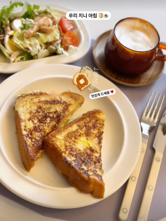 사진에는 류이서가 차려준 전진의 아침상이 담겨있다. 류이서는 토스트와 샐러드, 커피로 먹음직스러운 남편의 아침상을 완성해냈다. 부부의 달달한 일상이 훈훈함을 자아낸다.