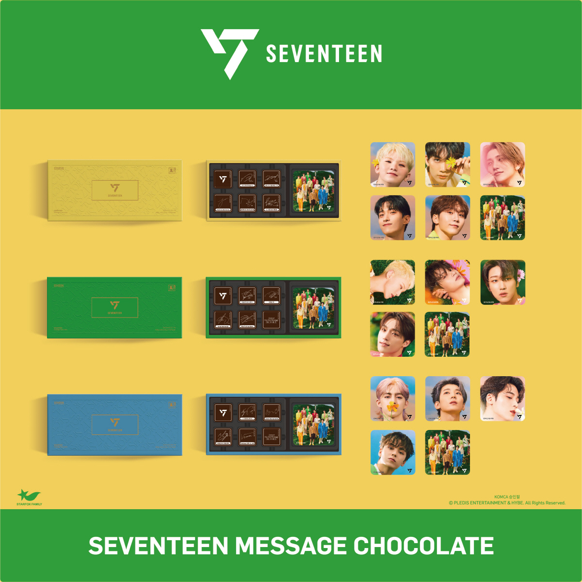 이번에 출시되는 '세븐틴 메시지 초콜릿'은 세븐틴의 '_WORLD' 가사말과 'HOT' 가사말과 사인이 새겨진 초콜릿 과 세븐틴 각 멤버들 사진 마그넷(Magnet) 1개가 포함돼 있다.