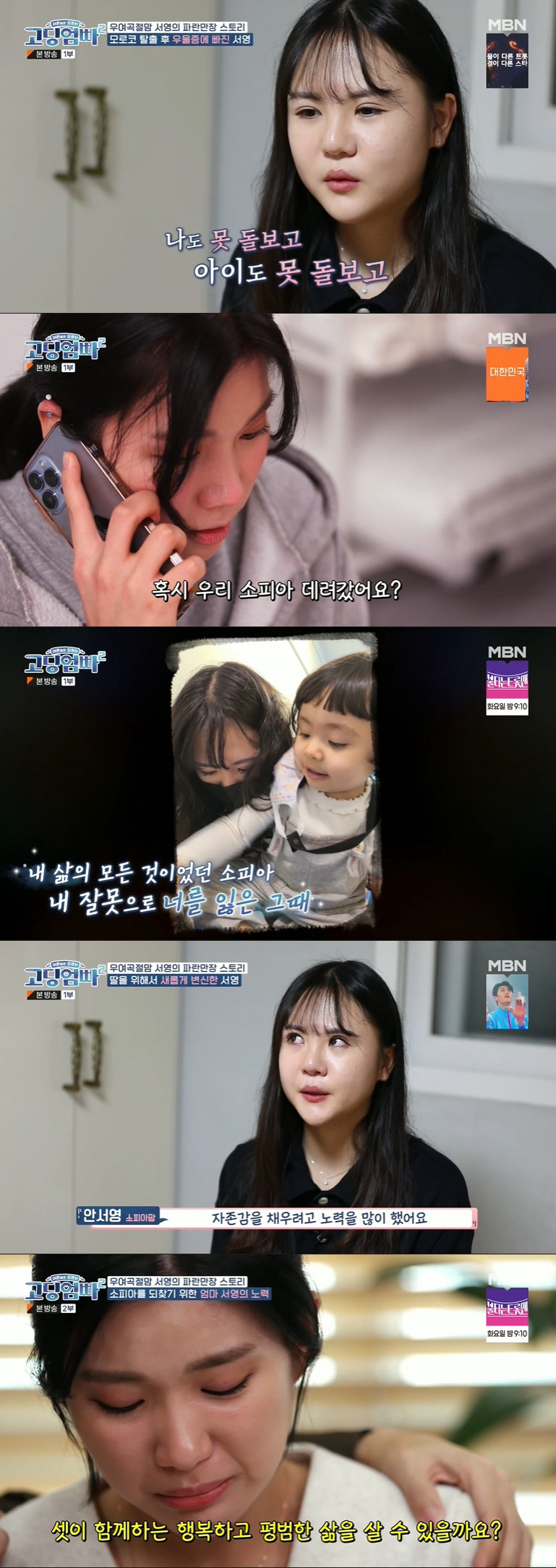 안서영은 "삶을 포기하고 싶을 정도로 떨어지니까 너무 힘들었다. 내가 여기서 포기하면 얼마나 힘들까, 소피아도 얼마나 힘들까 싶었다"고 그때를 떠올리며 눈물을 보였다.