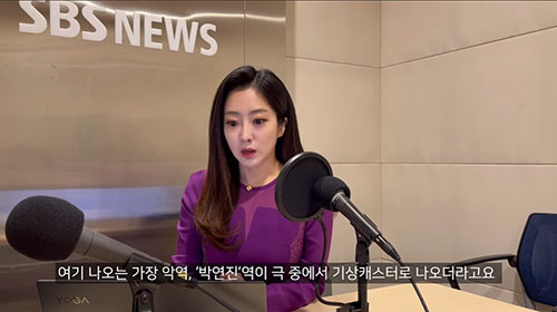 양태빈은 "그녀는 현직 기상캐스터로서 더 글로리 속 기상캐스터 '박연진'의 모습을 리뷰해보겠다. 보니까 드라마에 나오는 장면들이 실제와 흡사한 것도 있지만 상당히 다른 부분도 있다"고 이야기했다.