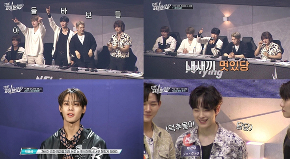 FNC가 제작에 참여한 서바이벌 프로그램 '더 아이돌 밴드'. 엔플라잉이 프로듀싱한 밴드 T.I.B에게 응원하는 모습. 방송화면 캡처