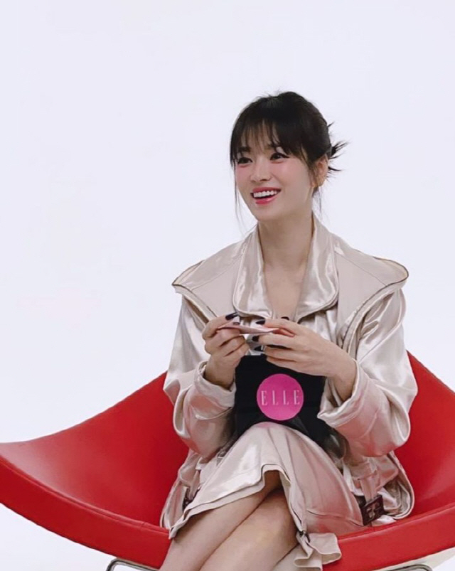 송혜교는 19일 "즐거웠던 ELLE 인터뷰"라는 글과 함께 여러 장의 사진을 게재했다. 공개된 사진 속에는 화보 촬영 후 인터뷰 도중 찍힌 송혜교의 모습이 담겼다. 순간적으로 찍힌 사진에도 송혜교는 화려한 미모를 자랑해 눈길을 모은다.
