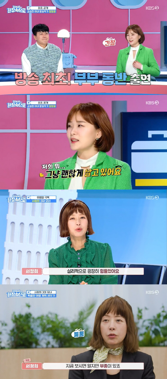 서정희는 "사람들 앞에 나서기 힘든 상탠데 계속 숨어있으면 안 될 거 같더라. 고통과 친구처럼 지내고 싶다. 수술실에 들어갈 때 내가 살아서 나올 수 있을까? 싶었다. 엄마랑 딸하고 같이 있는 시간을 이렇게 보내면 안 되겠다 싶었다"고 여행을 앞두고 설레는 마음을 드러냈다.