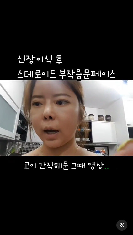 또 박지연은 "얼굴 살이 없어서 오히려 고민했던 시절도 있었다. 신장이식 후 거부반응으로 투석을 시작하고 스테로이드를 붓기가 빠지면서도 오래된 붓기는 살이 되었고 늘 얼굴살은 고민으로 평생 숙제로 남았죠"라고 자막으로 상황을 설명하기도 했다.