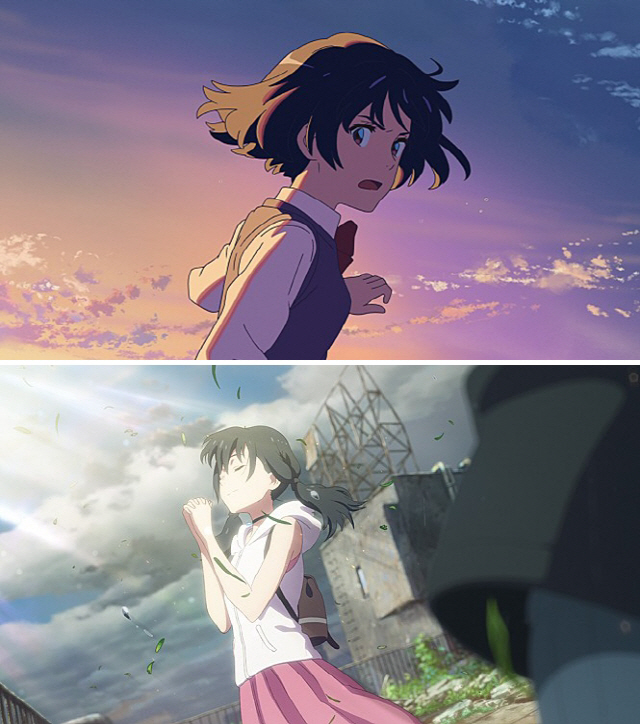 먼저 지난 2017년 개봉한 영화 '너의 이름은.'의 미츠하는 도쿄의 화려한 생활을 동경하며 깊은 시골 마을에 사는 고등학생이다. 우연히 마을이 위험에 빠졌다는 것을 알게 되고 주민들을 대피시키고자 온 힘을 다해 노력한다.