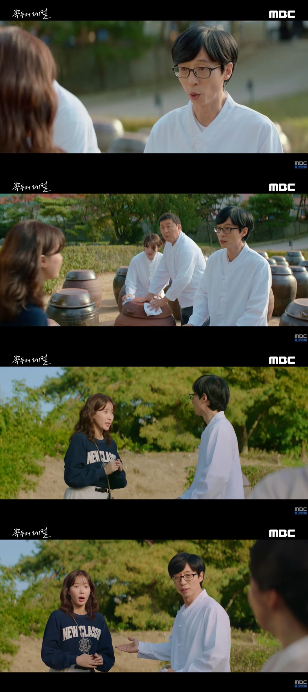 유재석은 한계절의 질문에 "아 명인님이요? 저 명인님!"이라고 말한 뒤 항아리를 닦았다. 그때 유재석 뒤로 정준하와 이미주의 모습도 포착됐다. 짧은 등장에도 강렬한 임팩트를 선보이며 깨알 재미를 더해 본방송을 더욱 기대케 했다.