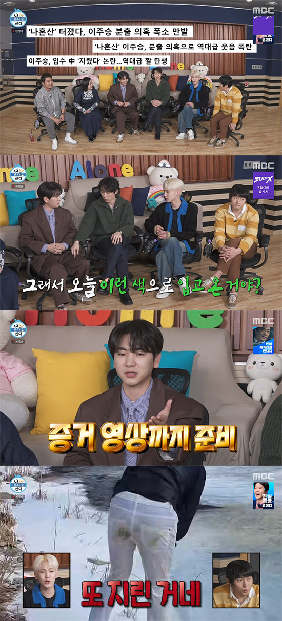 이주승은 앞선 방송에서 얼음물 입수를 피해 도망가려다 엉덩이에 노란 자국이 생겼고, 연관 검색어에 '이주승 분뇨'가 생겼던 것. 코드쿤스트는 "그래서 오늘 이런 색으로 입고 온 거야?"라며 갈색 슈트를 입고온 이주승을 지적했다.