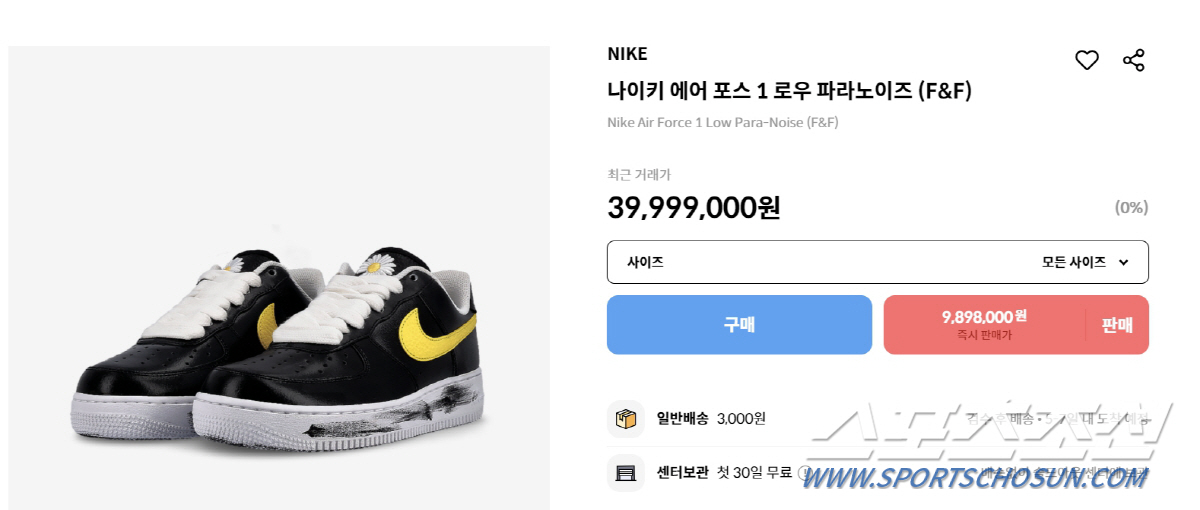 3일 무신사가 만든 스니커즈 거래 사이트 '솔드아웃' 홈페이지엔 '나이키 에어 포스 1 로우 파라노이즈' 제품이 3999만9000원에 팔렸다고 떠 있다.