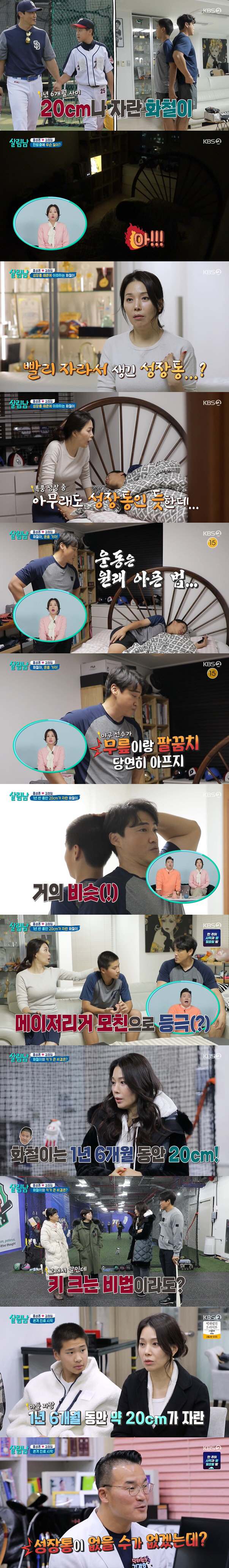 4일 방송된 KBS2 '살림하는 남자들 시즌2'에서는 성장통 때문에 밤잠을 설치는 화철이와 함께 병원을 찾은 홍성흔, 김정임 부부의 이야기가 그려졌다.