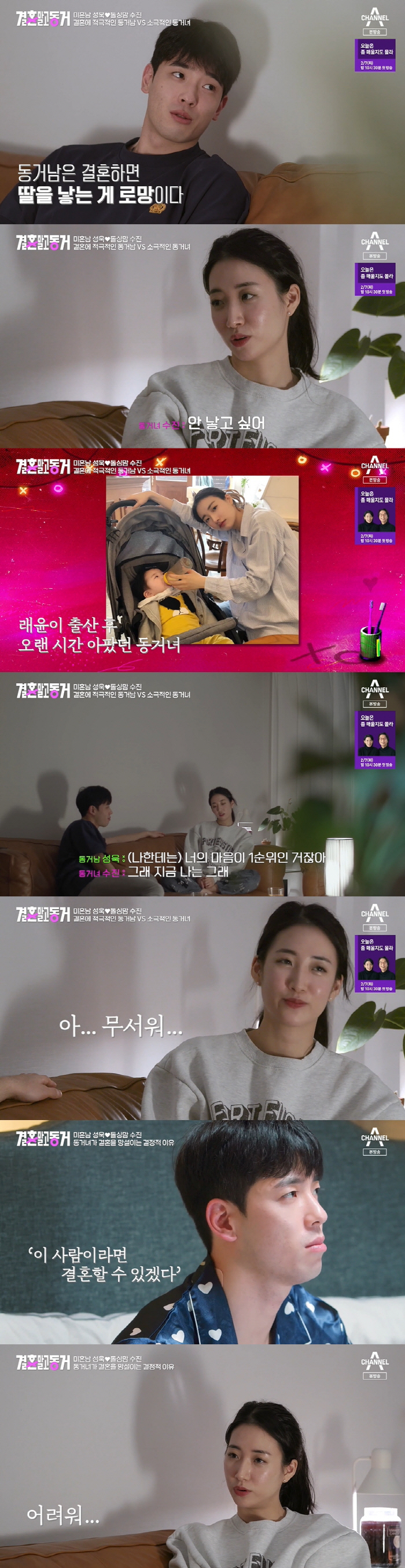 배성욱과 배수진은 이날 결혼에 대한 이야기도 나눴다. 하루라도 빨리 결혼하고 싶어 하는 배성욱과는 다르게 배수진은 결혼을 망설였다. 배성욱은 "수진이 만나면서 항상 느낀 게 '이 사람이라면 결혼할 수 있겠다', '이 사람과 결혼하고 싶다'는 생각이 많이 들었다. 그래서 수진이랑 결혼을 빨리하고 싶은 생각이 있다"며 결혼에 적극적인 모습을 보였다. 하지만 이혼의 아픔을 겪은 배수진은 "난 진짜 어렵다. 그냥 이대로 행복할 수 있다면 결혼을 빨리하고 싶은데 사람 일은 어떻게 될지 모르고 나도 아픔이 있으니까 두렵고 무섭다"며 "(지난 결혼 생활은) 실패했기 때문에 조금이라도 더 신중하려고 하는 거 같다"며 결혼을 망설이는 이유를 고백했다. 그런 배수진의 모습에 배성욱은 "수진이가 결혼을 서두르지 않는 가장 큰 이유는 나 때문이라고 생각한다"며 "내가 행동을 더 똑바로 하고 확신을 줘야 하는 부분이라고 생각한다"고 말했다.