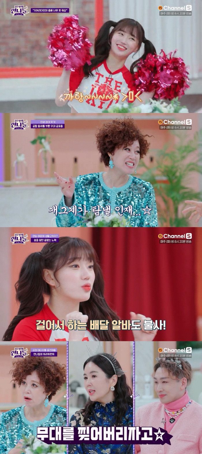 7일 방송된 채널S '진격의 언니들'에는 첫 손님으로 비록 몸은 뚝딱거리지만, 에너지만은 누구에게도 지지 않는 몸치 치어리더 조다정이 찾아왔다. 그는 "2년 차 치어리더인데 춤을 너무 못 춰요"라며 고민을 전했다.