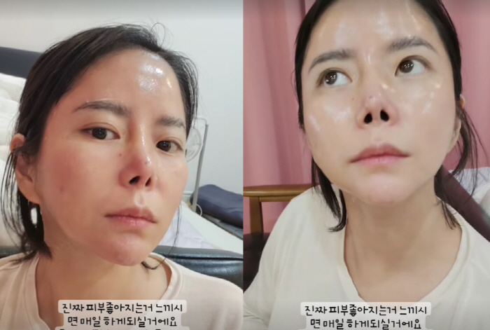 박지연은 전날에도 "팩하고 크림 안 바른 쌩 피부. 이게 진짜 콜라겐 광 장난 아닌데 크림까지 발라두면 광 장난 아님"이라면서 스스로 자화자찬하기도 했다.