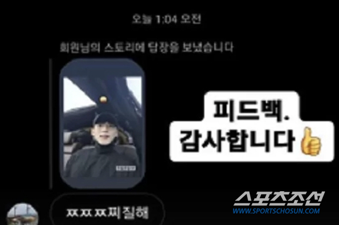 한정민은 이를 캡쳐해 게시글로 올리며 쿨한 반응을 보였다. "피드백. 감사합니다"라며 글과 함께 심지어 엄지척 이모티콘을 더했다.