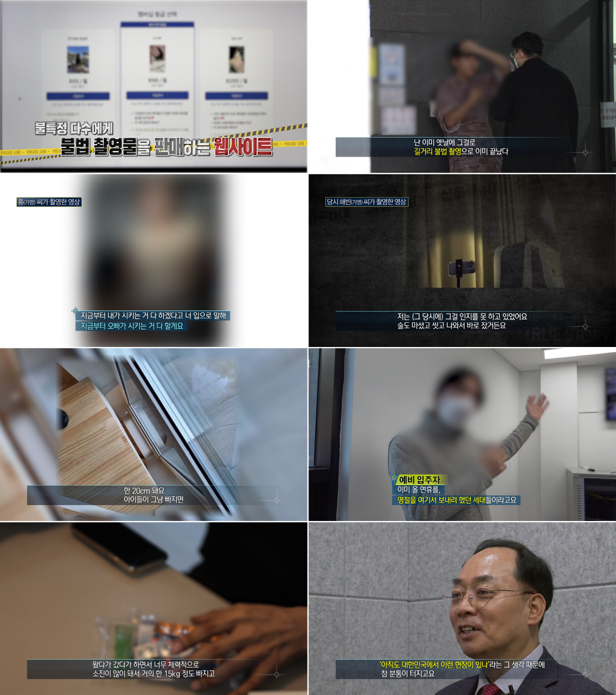 제작진은 수소문 끝에 홍 씨(가명)가 촬영한 영상에 자주 등장하는 한 여성을 만나 이야기를 들어봤다. 자신을 홍 씨(가명)의 전 여자친구라고 소개한 이 여성은 언젠가 촬영된 영상들이 유포될 거란 걸 예상했다고 한다. 그러나 홍 씨(가명)는 불법 촬영으로 이미 7년 전 집행유예를 받은 뒤 더 이상 이 같은 행동을 하지 않았다며 모든 사실을 부인하고 있다.