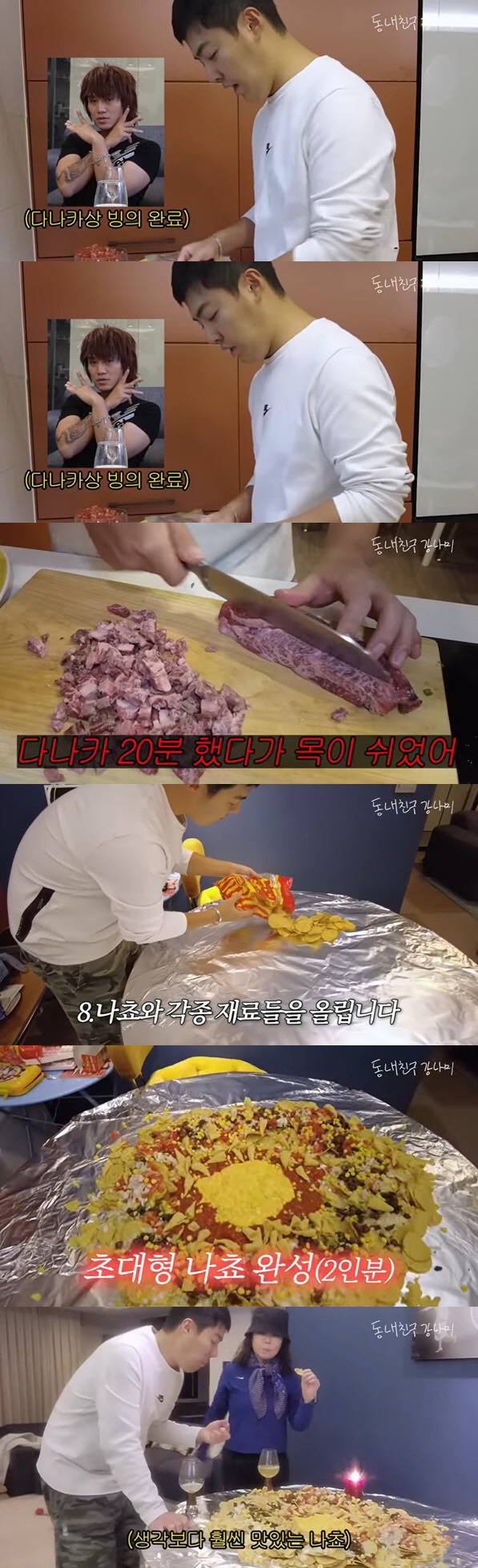이후 강남은 나쵸와 각종 재료들을 올려 초대형 나쵸를 만들었다. 이상화는 완성된 나쵸 비주얼을 보고는 "꽃 같다"면서 만족해했다. 강남은 어머니도 초대해 함께 나쵸를 먹었다. 어머니는 비주얼을 보고는 "너무 멋있다"며 감탄했다. 맛을 본 뒤에는 "너무 맛있다"면서 아들 부부와 즐겁게 먹었다.