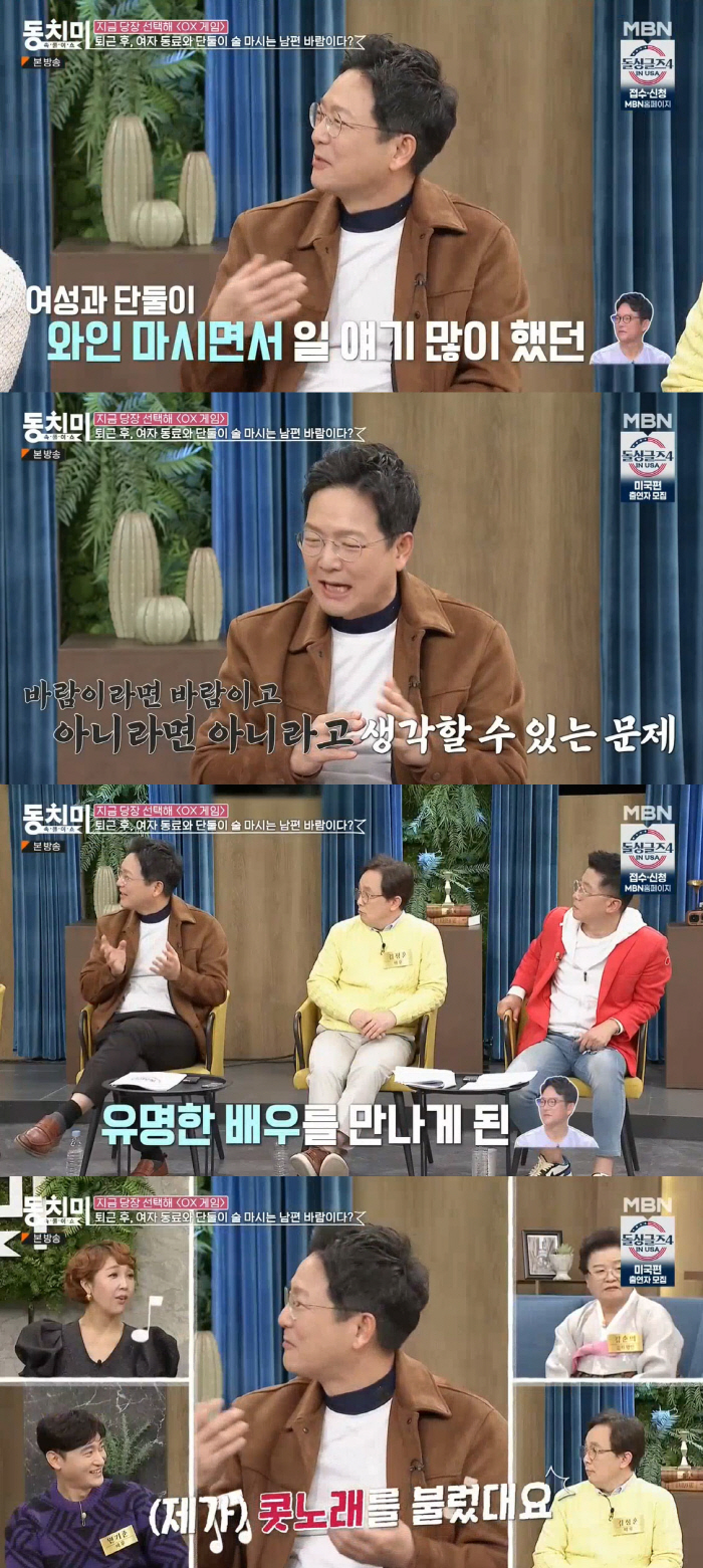 지난 11일 방송된 MBN '속풀이쇼 동치미'에서는 '퇴근 후 여자 동료와 단둘이 술 마시는 남편 바람이다?'를 주제로 출연자들이 이야기를 나눴다.