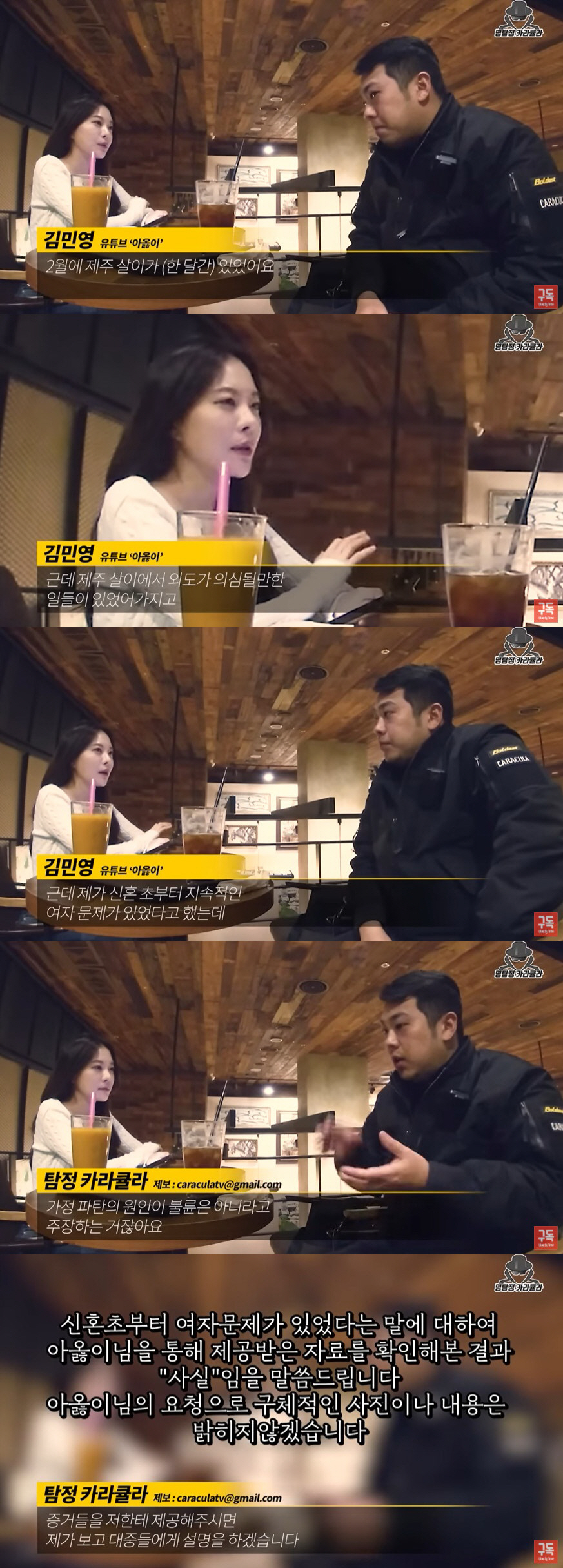 다만 서주원은 아옳이의 주장을 모두 반박했던 바. 아옳이는 카라큘라가 서주원의 '여자 문제'에 대해 묻자 "지금도 서주원이 힘든 상황인데 더 힘들어질 거 같아서 개인적으로 보여드리고 맞다고 생각하시면 여자 문제가 있다고 해달라"고 카라큘라에게만 자료를 공개했다. 이후 카라큘라는 자막을 통해 "제공 받은 자료를 확인해본 결과 사실"이라고 밝혔다.