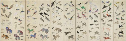 '어해도10폭 병풍'은 풍요로움과 다산, 과거합격, 출세를 기원하며 쏘가리와 잉어 등 다양한 어류를 그린 조석진의 작품이다. '백수도10폭병풍'은 동물도감처럼 배경 없이 86쌍의 다양한 동물들을 그려 넣었다.