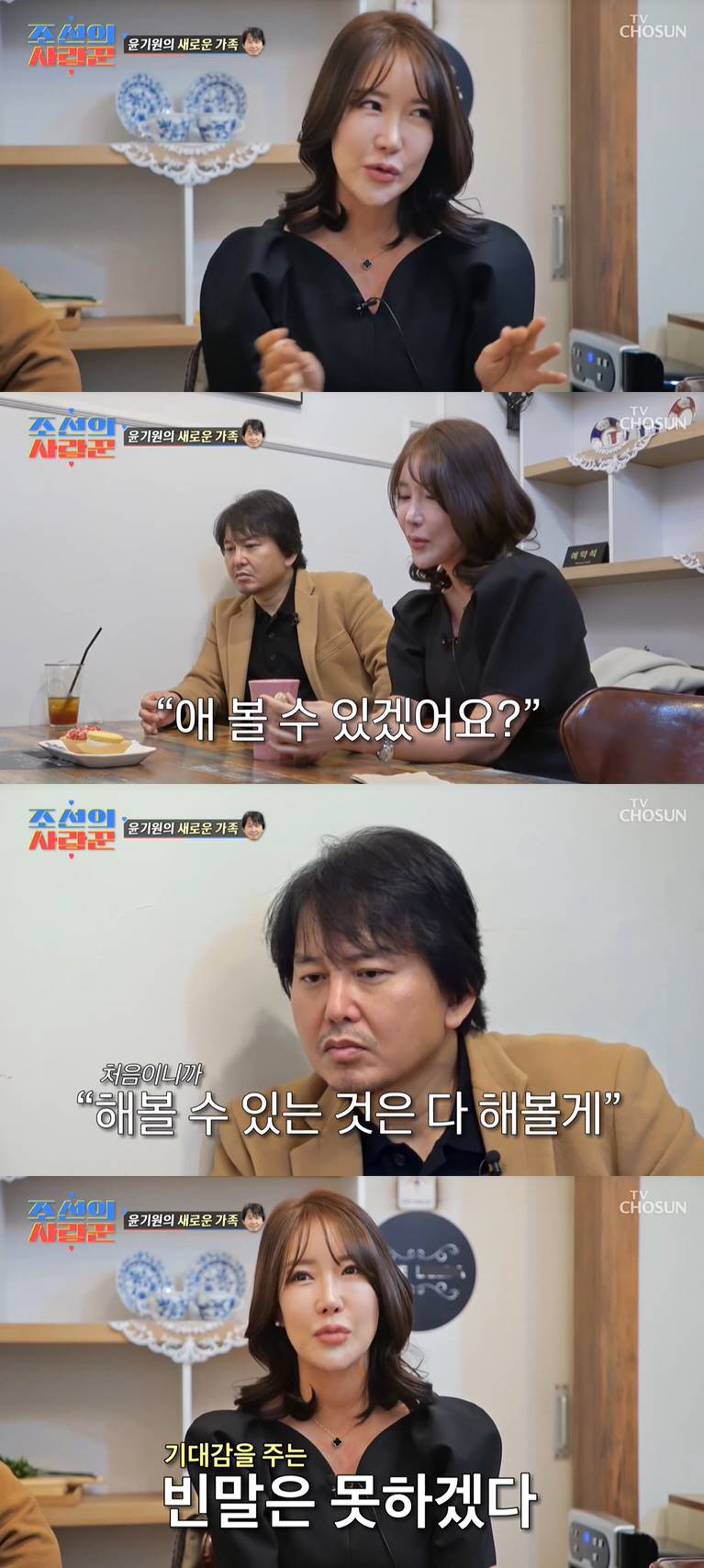 윤기원의 여자친구인 이주현은 "사실 저도 이혼을 해서 애가 있다. 처음엔 제가 말을 못했다. 진지하게 만나기로 하고 시간이 좀 더 흘러 제가 얘기를 하게 됐다. 같은 이혼한 입장이지만 오빠는 애가 없으니 제 입장에서는 여러 생각이 들더라"고 했다. 이어 "제가 펑펑 울면서 '이 사실을 알고 나서 헤어지자 해도 된다. 생각할 시간을 줄테니 생각해보고 연락달라'고 했다. 생각할 시간 필요 없다더라. 너라는 사람이 좋은 건데 과거는 중요한 게 아니라더라"고 말하며 눈물을 쏟았다.