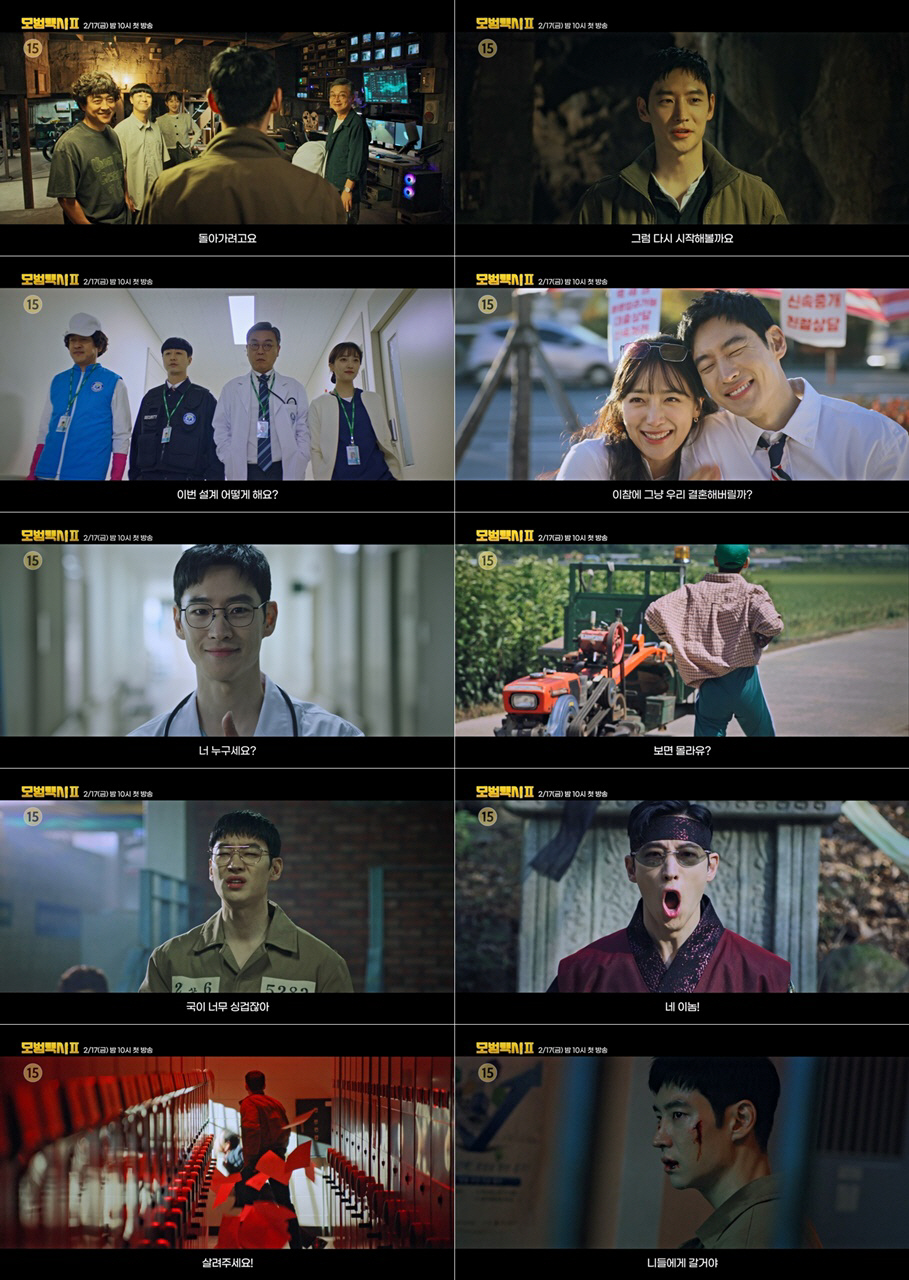 공개된 2차 티저 예고는 다시 뭉친 '무지개 5인방' 김도기(이제훈), 장성철(김의성), 안고은(표예진), 최경구(장혁진), 박진언(배유람)을 조명하며 시작된다. 이들은 '잘 빠진 신차'를 선보이며 본격적으로 모범택시의 운행을 시작한다. 뒤이어 '무지개 5인방'의 버라이어티한 복수 설계로 시선을 강탈하는데, 앞선 시즌1에서 다채로운 부캐를 탄생시키며 소위 'N도기 시리즈'를 탄생시켰던 김도기에 이어 장성철, 안고은, 최경구, 박진언 역시 다양한 부캐로 변신, 필드 플레이에 적극 가담한다.