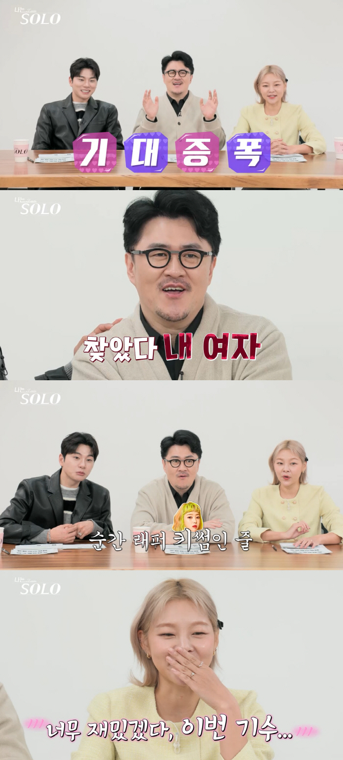 솔로녀들의 '솔로나라 13번지' 입성을 지켜보던 3MC 역시 놀라움에 "와!", "어머"라고 '입틀막'하다 충격과 경악을 감추지 못한다. 송해나는 "너무 예쁘시다. 이번 기수 왜 이래!"라고 '과몰입'하고, 데프콘은 "럴수럴수이럴수~"라며 화면에 빠져들다가, 갑자기 "내 여자!"라며 포효한다. '솔로나라' 역대 최고의 개성을 자랑하는 솔로녀의 등장에 송해나는 "멋있다!"고 '엄지 척'을 연발하고, 데프콘은 "이번 조합, 난리 나겠네"라고 예측한다. 데프콘을 포효하게 만든 '전원 옥순급' 솔로녀들의 정체에 초미의 관심이 쏠린다.