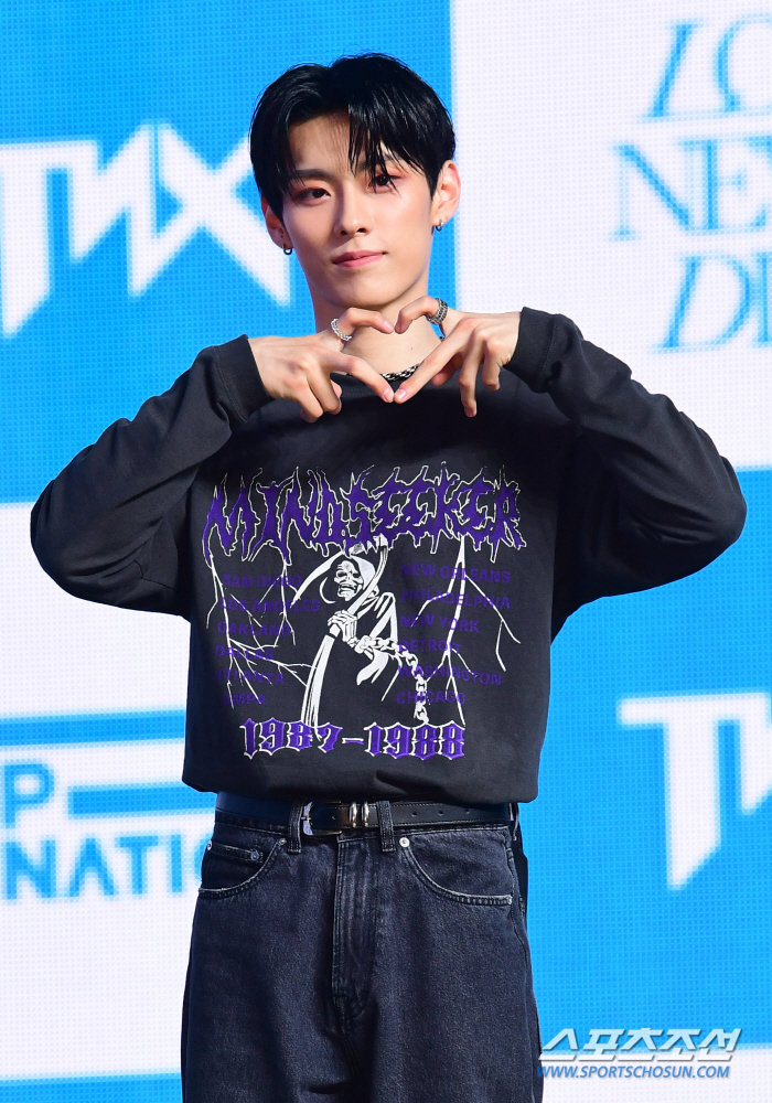 보이그룹 TNX 태훈이 15일 한남동 블루스퀘어에서 열린 두 번째 미니앨범 'Love Never Dies' 쇼케이스에서 포즈를 취하고 있다. 한남동=최문영 기자 deer@sportschosun.com/2023.02.15/