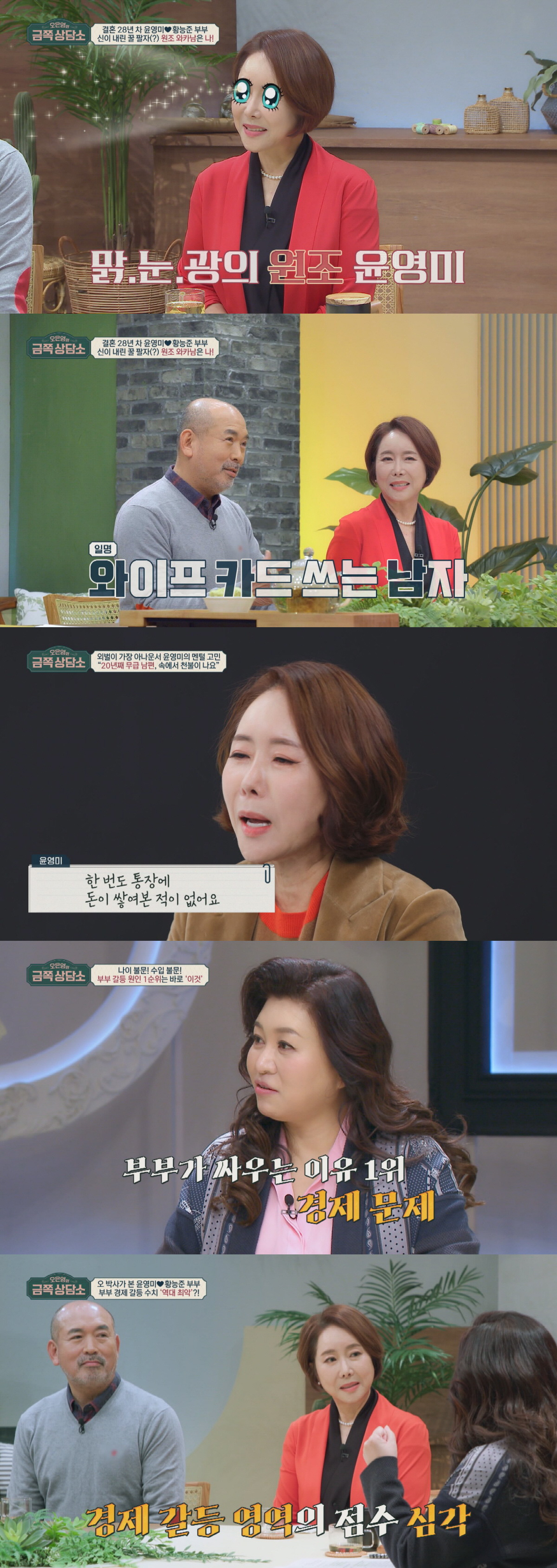 결혼 28년 차인 윤영미와 황능준 부부는 스스로를 '원조 부부'라고 소개하며 상담소 문을 두드린다. 윤영미는 '맑은 눈의 광인' 일명 '맑.눈.광'의 원조, 황능준은 '와이프 카드 쓰는 남자'를 일컫는 '와카남'의 원조라고. 그러나 웃음을 주며 등장한 이들은 화기애애한 분위기도 잠시, 윤영미는 "한 번도 통장에 돈이 쌓여본 적이 없어요"라며 고민의 운을 띄운다.
