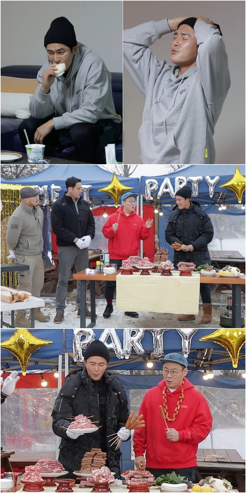 이에 장동혁은 황충원, 줄리엔 강과 함께 조동혁을 위한 서프라이즈 육식 파티를 준비했다. 돼지고기는 기본 소고기, 양고기, 소시지, 떡갈비, 사골뼈 등 그야말로 육식의 모든 것을 준비했다고 해도 과언이 아닌 수준.