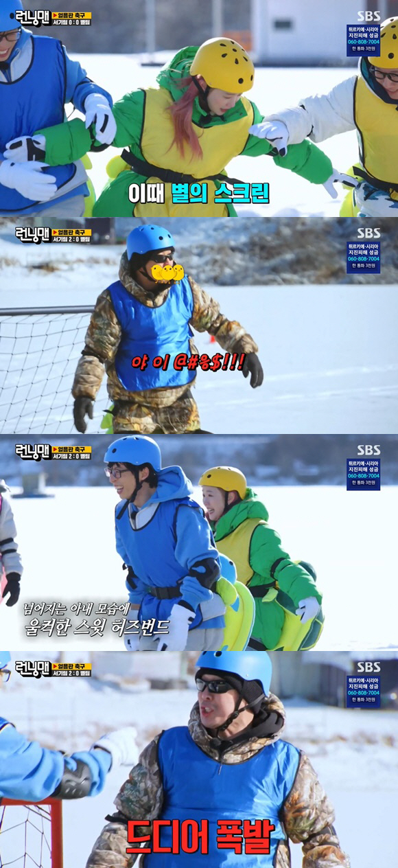 특히 이날 미끄러운 빙판 위에서 축구를 진행했는데 한껏 과열된 분위기 속에서 별과 유재석, 하하는 치열한 몸싸움을 벌였다. 승부욕을 불태우는 별의 모습에 하하는 일과 사랑의 사이에서 고뇌에 빠진 것도 잠시, 결국 버럭 소리를 질러 애꿎은 유재석만 진땀을 흘리는가 하면, "화난 거 아니죠?"라며 걱정하기도 했다. 지켜보던 멤버들 역시 "부부가 서로 안 봐준다"라며 혀를 내둘렀다.