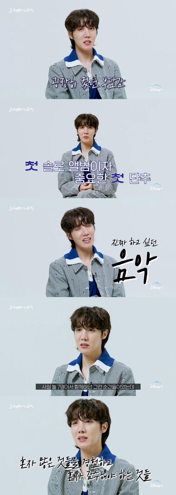 이날 제이홉은 '솔로 앨범을 준비하면서 외로움과 부담감 중 더 힘들었던 점은?'이라는 질문에 '부담감'을 꼽았다.