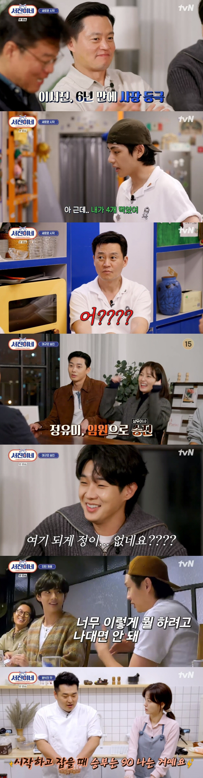 하지만 이서진은 식당에서 분식을 팔 거라는 말을 듣자마자 "갑자기 감흥 확 떨어진다. 너무 힘든 메뉴"라고 불만을 터뜨렸다. 이에 나 PD는 새로운 사원으로 방탄소년단 뷔를 뽑았다고 밝혔다.