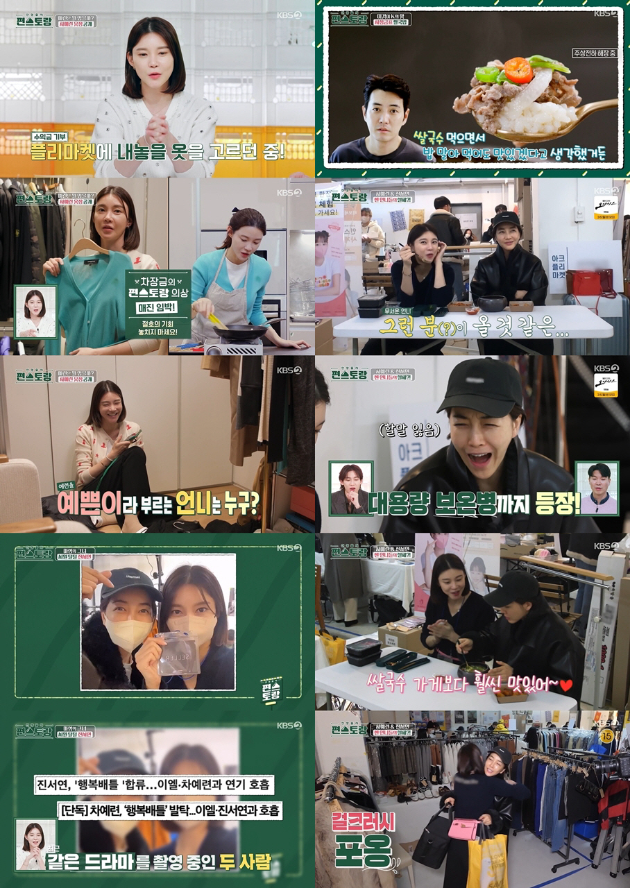 24일 방송된 KBS 2TV '신상출시 편스토랑'(이하 '편스토랑')에서는 차장금 차예련이 절친 진서연을 위해 특별한 음식을 만들었다. 작품 속 화려한 이미지 때문에 '센 언니'일 것 같다는 오해를 받는 두 사람이지만 실제로는 세상 누구보다 다정하고 러블리한 그녀들이었다. 맛있는 음식, 훈훈한 선행까지 함께하는 차예련과 진서연의 반전매력이 금요일 밤을 발칵 뒤집었다.