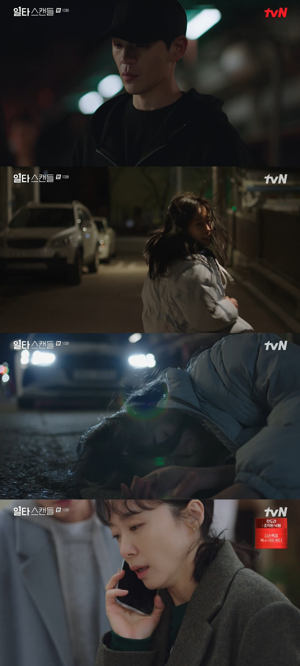 25일 방송된 tvN 토일드라마 '일타 스캔들'에서는 쇠구슬 연쇄살인범 지동희(신재하 분)가 남해이(노윤서 분)를 위협한 모습이 그려졌다.