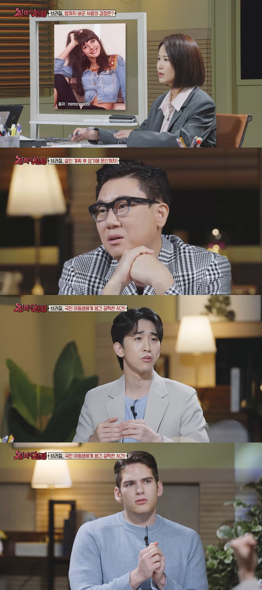 그런가 하면 다니엘라의 사망 사건으로 인해 브라질의 법이 개정되기도 했다고. 법을 바꿀 정도로 잔인했던 여배우의 사망 사건을 접한 스튜디오 MC들은 분노와 안타까움이 뒤섞인 표정을 드러낸다. 특히 이상민은 "너무 오래전 이야기이고 너무 먼 나라 이야기인데, 너무 마음이 아프다"라며 착잡함을 내비치기도.