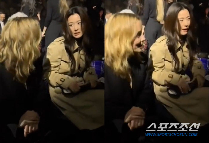 이날 전지현은 패션쇼 현장에서 HBO 드라마 '킬링 이브'에 출연한 영국 배우 조디 코머와 나란히 앉아 짧은 대화를 나눴다.