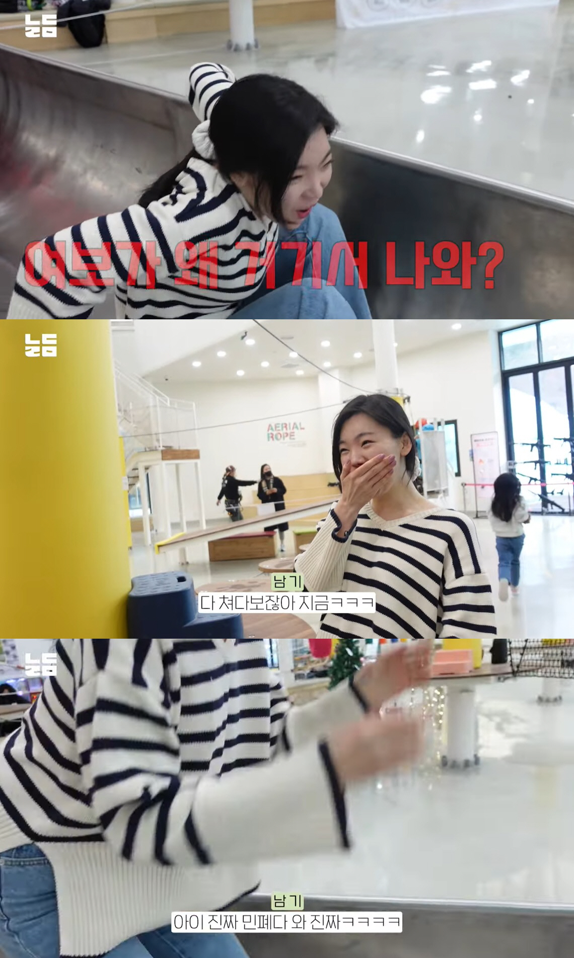 아직 키가 작아 활동적인 놀이를 하지 못한 리은 양은 대신 키즈존을 활보했다. 그런데 아이들 전용 미끄럼틀에서 돌연 이다은이 나와 윤남기를 깜짝 놀라게 했다. 윤남기는 재밌어하는 이다은에게 "민폐다. 다 쳐다보잖아 지금"이라고 반응해 웃음을 자아냈다. 이다은은 "장난 아니다. 너무 재밌다"며 흠뻑 빠진 모습을 보였다.