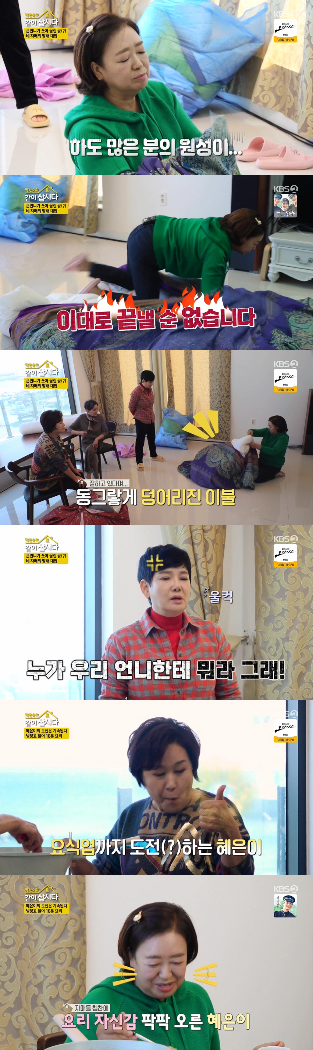 뿐만 아니라 이날 혜은이는 냉장고를 털어 10분 요리에도 도전, 메뉴는 샤브샤브. 10분만에 뚝딱 완성, 자매들은 "너무 맛있다"고 칭찬했다. 이에 요리 자신감이 팍팍 오른 혜은이는 "너무 뿌듯하다"며 웃었다.