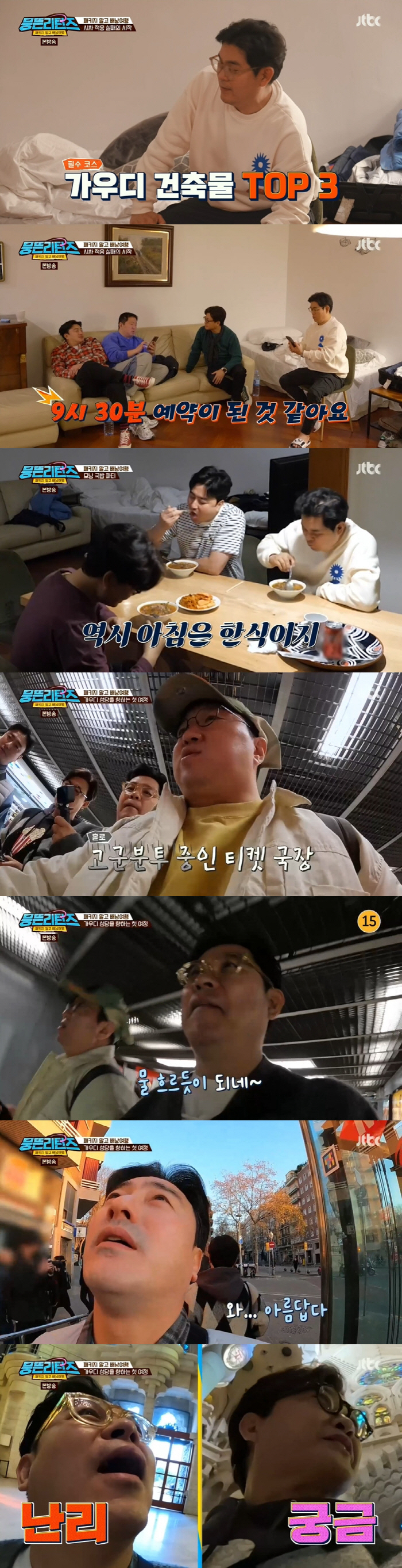 잠시 뒤 역에 도착, 설렘 가득한 표정의 뭉뜬 4인방은 눈 앞에서 마주한 사그라다 파밀리아 성당의 압도적인 웅장함에 입을 다물지 못했다.