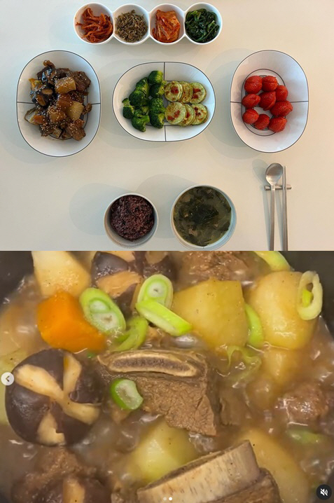 공개된 사진에는 진아름이 정성스럽게 차린 아침 밥상이 담겨있다. 각종 반찬에, 전, 채소, 갈비찜, 미역국까지 다양한 음식들이 예쁜 그릇에 정갈하게 담겨있어 눈길을 끈다.