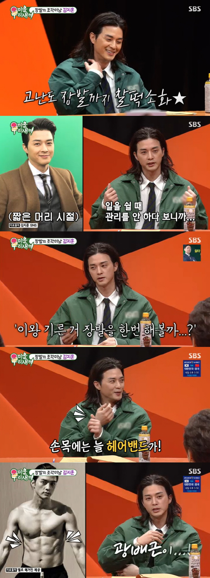 머리를 기르면서 생긴 습관도 있다고. 김지훈은 "습관적으로 쓸어 넘기게 된다. 머리가 기니까 자연스럽게 쓸어 넘기게 된다. 그리고 늘 손목에는 헤어밴드가 있다"고 밝혔다.