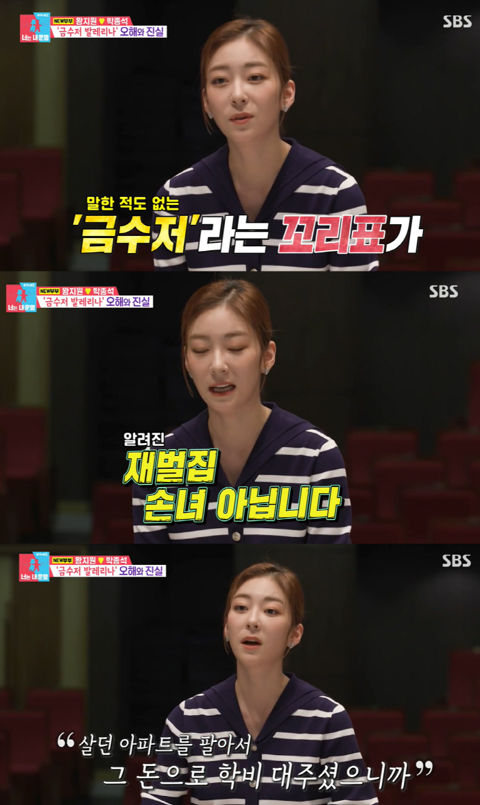 왕지원은 시작부터 "내가 금수저로 잘못 알려져서 속상했다. 스스럼없이 베일에 쌓인 내 모습을 솔직하게 보여주는게 좋지 않을까 싶어 출연하게 됐다. 나는 재벌가 손녀도 아니고 금수저도 아니다"라며 "부모님의 희생으로 발레를 지원해주셨다. 살던 아파트를 처분해서 유학 학비를 대주시기도 했다. 나는 내 힘으로 한단계 한단계 밟아 지금의 커리어를 만들었다"고 설명했다.