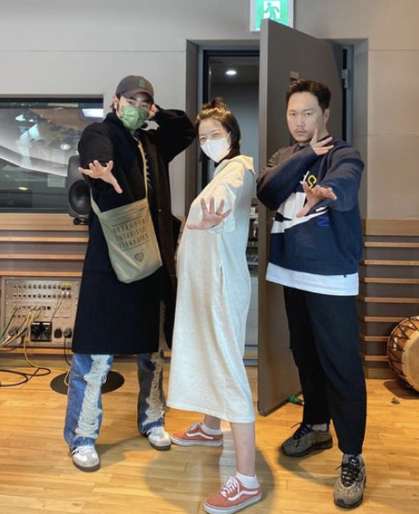 사진 속에는 라디오 스튜디오 안에서 포즈를 취하고 있는 안영미와 뮤지, 송진우의 모습이 담겨있다. 깜짝 3인조로 변신, 카리스마 가득한 표정과 포즈를 취하고 있는 모습이다.